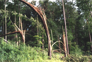 Neben ihrer direkten Schadwirkung in Form von Sturmwurf und -bruch (Abb. 1 bis 3) verursachen Stürme betriebswirtschaftliche Schäden, reduzieren die Bestandesvitalität und begünstigen waldbauliche und waldschutztechnische Folgeschäden. Zwischen 1950 und 2000 waren Stürme für über 50% der durch abiotische Schadursachen angefallenen Schadholzmenge in Europa verantwortlich. Veränderte Sturmintensität und –häufigkeit könnten Stabilitätsvorteile der Laubbäume in Frage stellen, sowie eine Überarbeitung etablierter Waldbaustrategien und langfristiger Produktionszeiträume erfordern. Die Auswirkungen von Temperatur- und CO2-Erhöhung werden von zahlreichen anderen Forschungsprojekten bearbeitet, bleiben in diesem Beitrag also außen vor. Aus Platzgründen wurde großteils auf das wissenschaftliche Zitieren verzichtet. Eine ausführliche Literaturliste mit den verwendeten 75 Referenzen ist beim Autor erhältlich. Die Quellenangaben sind im PDF-Download des vollständigen Artikels enthalten.