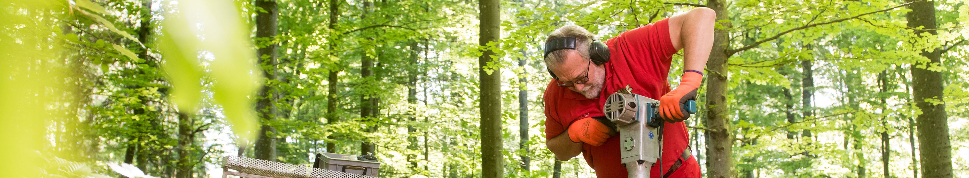 Abb. 4: Mit der Rammkernsonde werden Bodenproben bis aus einer Tiefe von 150 cm gewonnen (Foto: Tobias Hase, StMELF).