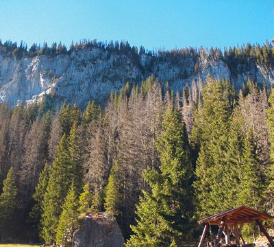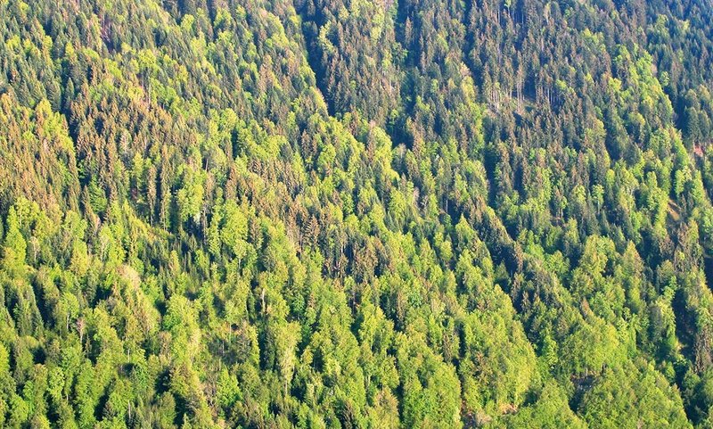 Abb. 6. Der Klimawandel begünstigt den Befall von Fichtenwäldern durch Borkenkäfer. Foto: Peter Brang (WSL)