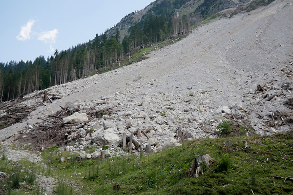 Hier gibt es umfangreiche Untersuchungen in verschiedenen Nachbarländern. Im Piemont in Italien ist eine Zunahme von Rutschungsereignissen seit 1960 dokumentiert. Ähnlich in den südöstlichen Französischen Alpen, wo für das Einzugsgebiet des Riou Bourdoux, das seit 1898 unter Beobachtung steht, ein deutlicher Anstieg seit den 1990er Jahren beobachtet wird (Lopez-Saez et al. 2013). In Österreich sind solche systematischen Beobachtungen für Rutschungen über längere Zeiträume leider nicht vorhanden.