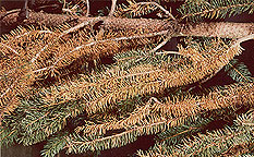 Nadelnekrosen an Fichte, hervorgerufen durch Schwefeldioxid