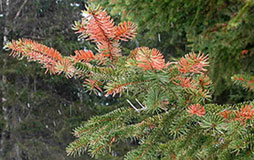 Symptome an Fichtennadeln, hervorgerufen durch Auftausalze