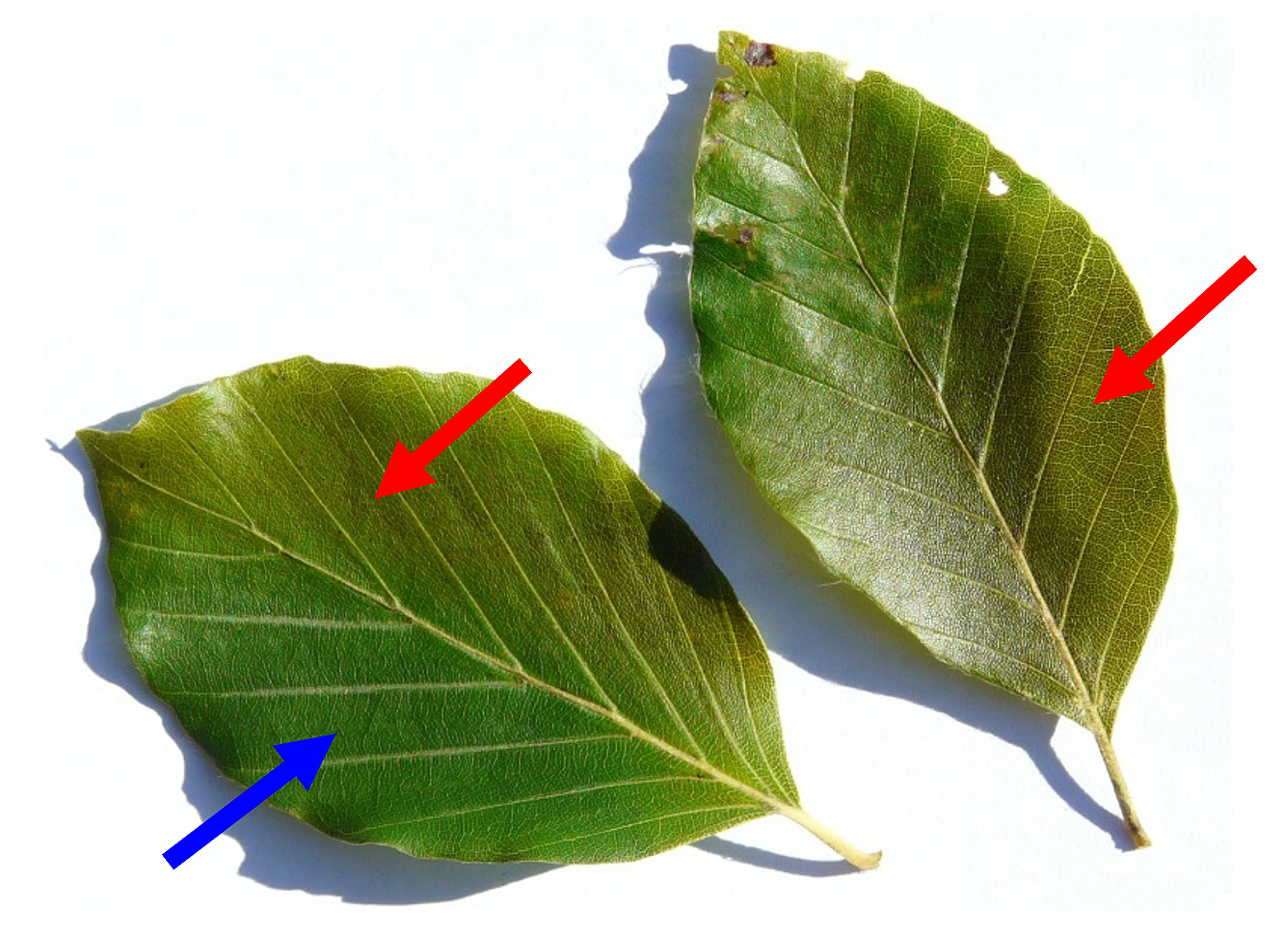 Die Ozonsymptome verstärken sich mit zunehmender Ozondosis, sie nehmen deshalb mit dem Blattalter zu. Ein gutes Erkennungsmerkmal ist der "Schatteneffekt", d.h. das Fehlen von Ozonsymptomen auf Blatteilen, welche von einem anderen Blatt dicht überdeckt sind. Suboptimale Ernährung hat in der Regel keinen Einfluss auf Schädigungen durch Ozon. Starke Trockenheit führt jedoch zum Schliessen der Spaltöffnungen und dadurch zu geringer Aufnahme von Ozon. Bei nassem Wetter sind Pilzinfektionen häufig, welche vorhandene Ozonsymptome überlagern. Blätter mit Pilzinfektionen werden daher vorsichtshalber nicht zum Beobachten von Ozonschäden verwendet.