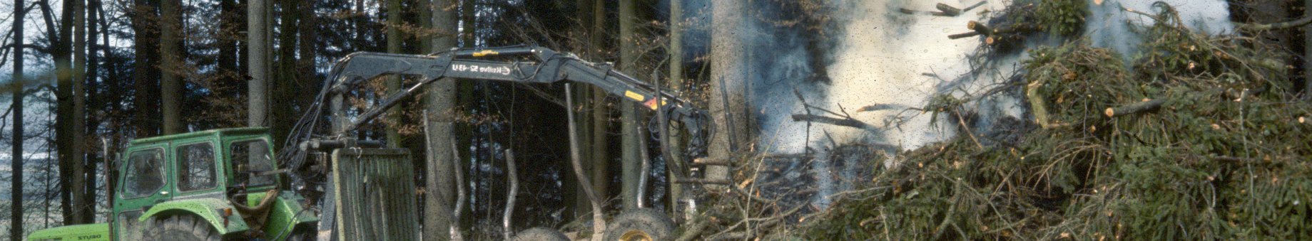 Abb. 1 - Leider werden auch heute noch Schläge nur aus rein traditionellen oder ästhetischen Gründen geräumt. Das liegen gebliebene Holz wird als Unordnung und Verschwendung empfunden und vorzugsweise vor Ort verbrannt, was besonders im Spätherbst und Winter zu den bekannten Rauchsäulen in unserer Landschaft führt. Dieser Rauch kann aber die Gesundheit gefährden und schadet dem Image der Forstwirtschaft.