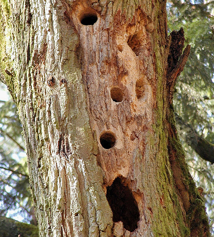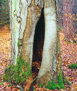Abb. 6: Biotopbäume haben viele Gesichter, sie haben aber auch eines gemeinsam: Für zahlreiche speziailsierte Tier-, aber auch Moos- und Flechtenarten sind sie ein wichtiger Bestandteil ihres Lebensraumes. Biotopbäume erhalten und fördern sind wichtige, aber auch einfache Maßnahmen für den Artenschutz in Wäldern.