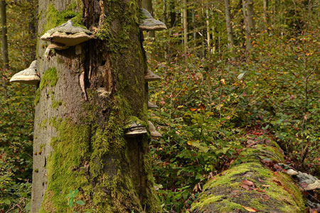Nach der Bundeswaldinventur (BWI) ist die Fläche der Laubbäume in Bayern in den letzten Jahren stetig gewachsen. Auch die für die Biodiversität so wichtigen Weichlaubhölzer halten mit 190.000 Hektar einen bemerkenswerten Anteil von acht Prozent. Die Totholzanteile, als wichtigstes ökologisches Strukturelement unserer Wälder, sind auf 22,0 Kubikmeter pro Hektar angewachsen.