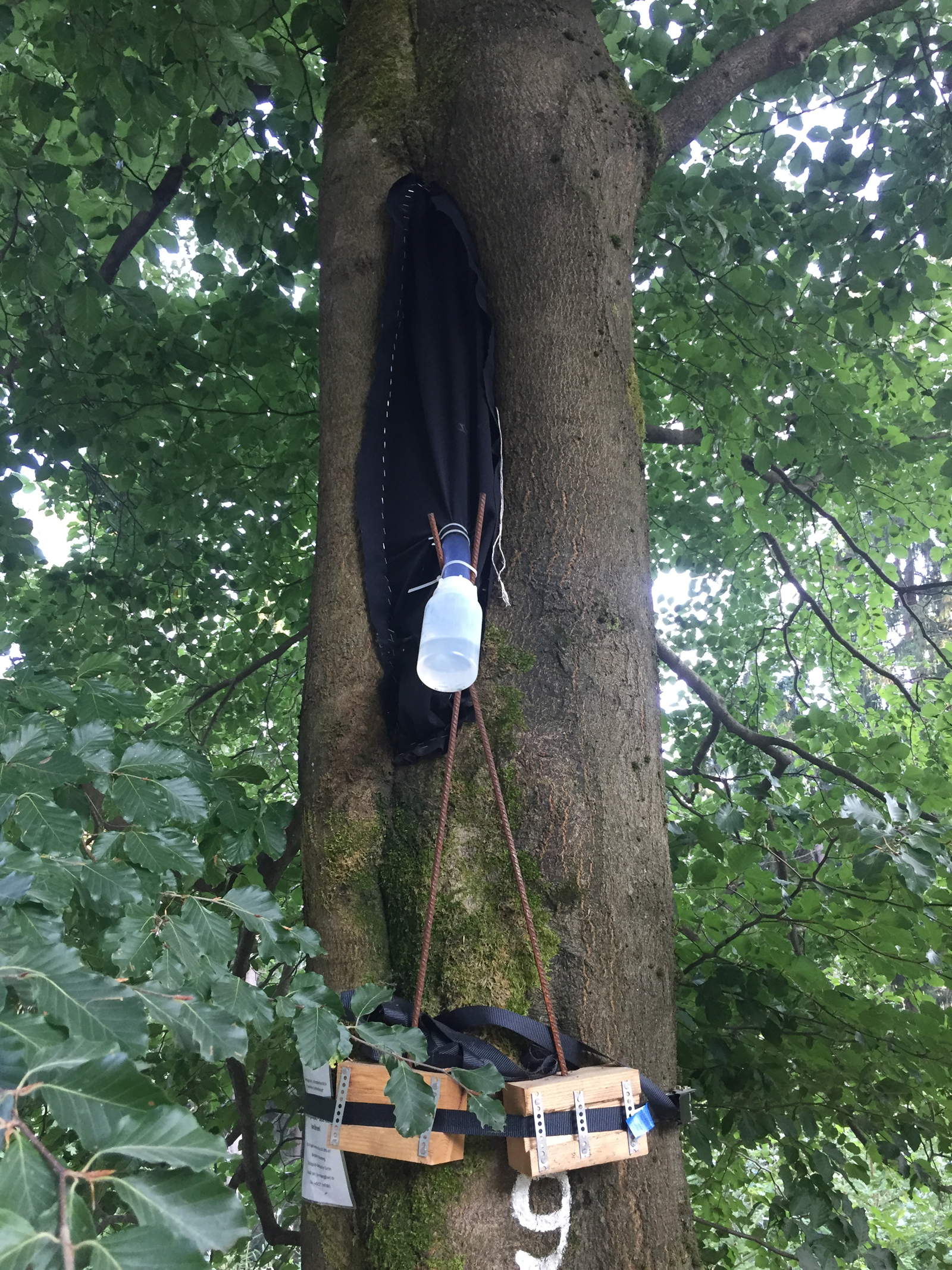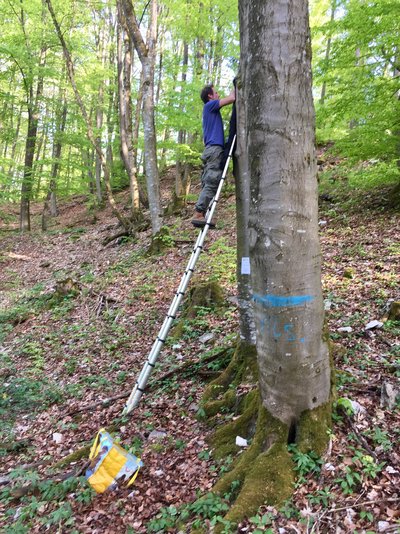 Neben dem Forstbetrieb Ebrach, der sich durch Eichen- und Buchenbestände auszeichnet, wurde der Forstbetrieb Kelheim untersucht, der gemischte Laub- und Nadelwälder aufweist, sowie der Forstbetrieb Fichtelberg, der durch montane, fast reine Fichtenbestände mit gelegentlichen Laubbaumvorkommen charakterisiert ist (Abbildung 2). In jedem der drei Waldgebiete wurden in den Jahren 2018 und 2019 jeweils einmal 40 bis 50 Mulmhöhlen in Rotbuchen mit Emergenzfallen beprobt. Dabei wurden die von April bis September aus den Mulmhöhlen entweichenden Insekten gefangen. Die Larvalentwicklung von mulmhöhlenbewohnenden Käfern erstreckt sich in der Regel über mehrere Jahre – folglich sind Larven, die im Jahr der Beprobung ihre Entwicklung noch nicht vollendet hatten, in den Höhlen verblieben und können in den Folgejahren schlüpfen.