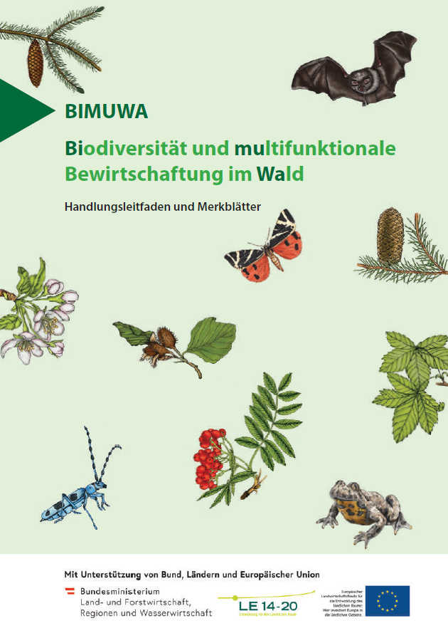 Diese sind in einem Handlungsleitfaden mit Merkblättern für die Biodiversitätsförderung detailliert dargestellt, wodurch BIMUWA einen wissenschaftlich fundierten, praktischen Ansatz für den freiwilligen Biodiversitätsschutz in dieser Region bietet. „Mithilfe des BIMUWA-Leitfadens ist es allen Waldbewirtschaftenden möglich, einen individuellen Beitrag zur Förderung der Biodiversität im eigenen Wald zu leisten“, fasst der BFW-Projektleiter Georg Frank zusammen.