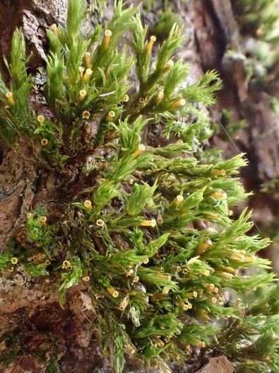 Den höchsten Wert für den regionalen Artenpool wies die Buche auf. Für diese Baumart wurden auf allen Probenflächen 68 epiphytische Moose bzw. 39 obligate Epiphyten festgestellt. Ähnlich viele Arten besaßen die Ahornflächen, während die Fichte mit 34 Arten bzw. 17 obligaten Epiphyten nur halb so viele Arten im Vergleich zur Buche besaß. Zu den häufigen Arten zählt u.a. Hypnum cupressiforme mit 46 und Orthotrichum affine (Abb. 3) mit 42 Vorkommen. 19 Arten wiesen dagegen nur jeweils ein Vorkommen auf. Mit Ausnahme dieser seltenen Arten blieb keine epiphytische Moosart auf nur eine Baumart beschränkt. Nur sechs Arten liessen sich als Indikatorarten für eine Baumart identifizieren: