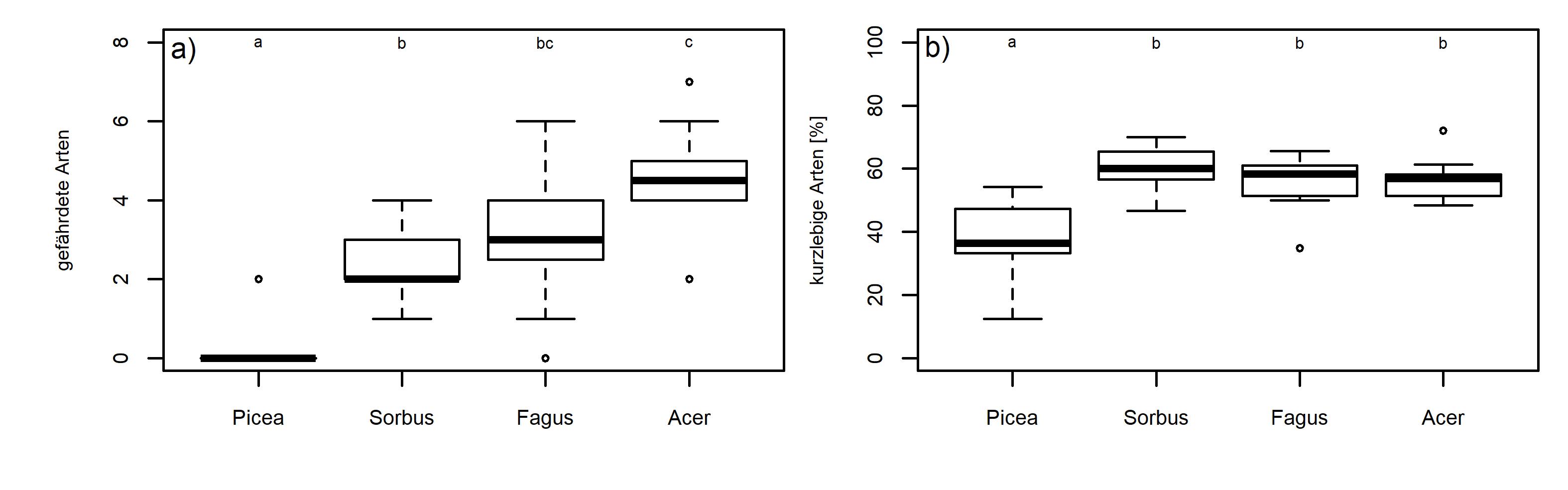 | Fichte | Eberesche | Buche | Ahorn | p-value | |