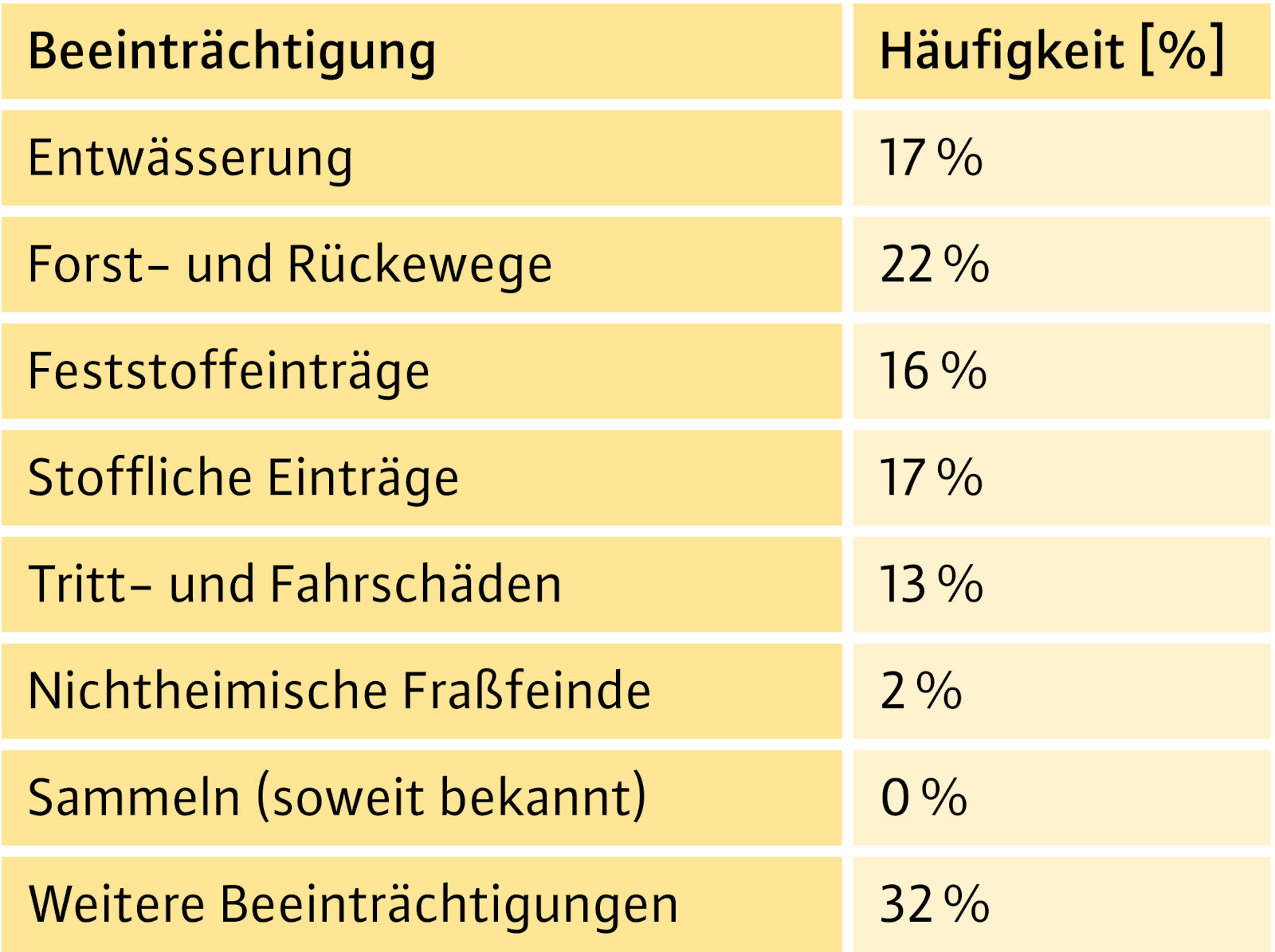Verbreitete Beeinträchtigungen