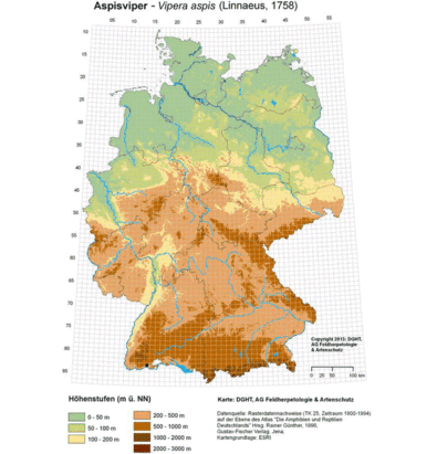 Abb. 2a. Verbreitung der Aspisviper (Vipera aspis aspis) in Deutschland (amphibien-reptilien.com).