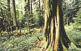Abb. 5 - Im Naturwaldreservat "Bois Banal" auf dem Gebiet der Gemeinde Clos du Doubs (JU) wird die Tanne zunehmend von der Buche verdrängt. Das Totholz bietet Lebensraum für Tausende von Insekten, Pilzen und Flechtenarten.
