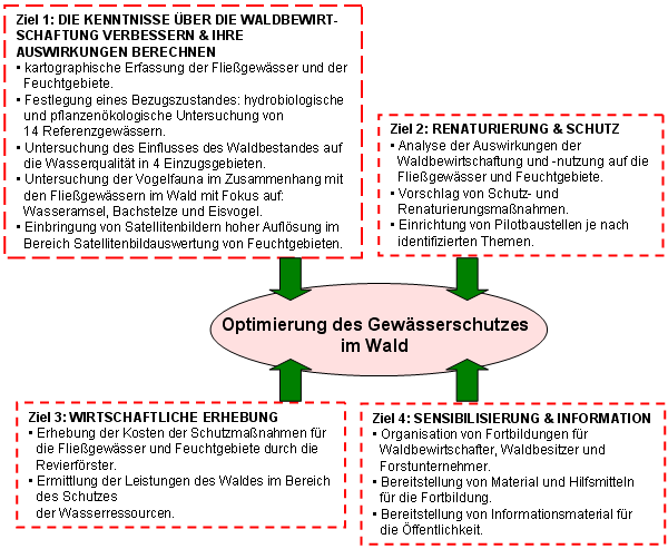 Die Erfassung von Fließgewässern und Feuchtgebieten im Wald ist ein unabdingbares Instrument zur Durchsetzung der vier - von den Partnern des Interreg-Projekts definierten - Hauptziele.