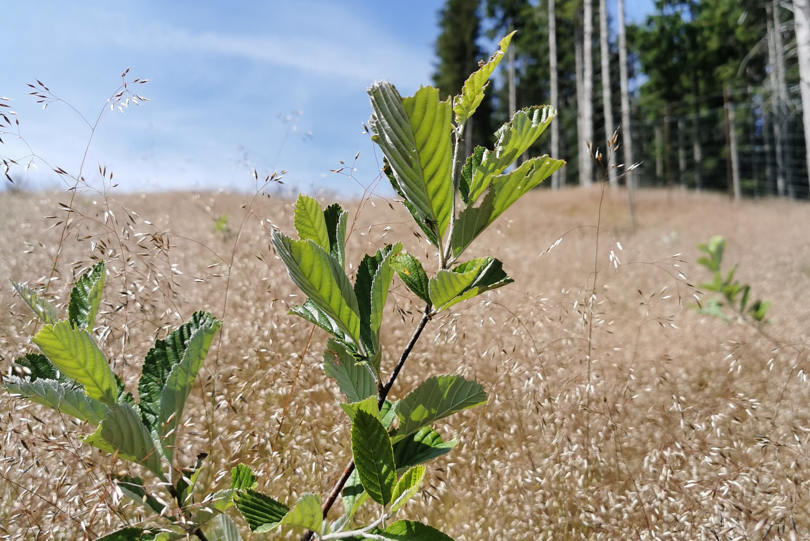 Abb. 2: Einjähriger Erlensämling auf Totholz.