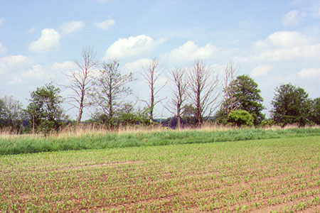 In einem Freilandversuch wurden Saaten mit Schwarzerle auf kleinen Störungsflächen durchgeführt. Die Versuche sollten zeigen, ob sich die Schwarzerle, die sich am besten auf nahezu vegetationsfreien Flächen verjüngt, auch auf Störungsflächen unter 1 qm erfolgreich etabliert. Solche Flächen wurden in einer Bachaue mit vorhandenen bzw. potenziellen Standorten des Hainmieren-Schwarzerlen-Auwalds angelegt und zwar in einem rd. 40jährigen Fichten-Bestand nach starker Durchforstung (Var. "Fichten-Feld"), unter dem Schirm eines ebenfalls ca. 40jährigen Schwarzerlen-Bestands ( Var. "Erlen-Feld") und auf einer mit einer Mädesüß-Gesellschaft dicht bewachsenen Hochstauden-Fläche (Var. "Hochstauden-Feld", Abb. 2).