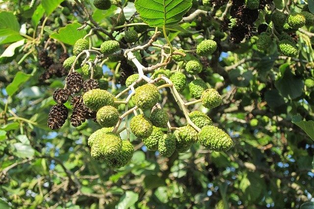 - mit ihrem speziell ausgebildeten Korkgewebe sind die Nüsschen der Schwarzerle bis zu 12 Monate schwimmfähig