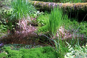 Abb. 1. Feuchte Stelle im Wald. Nach Artikel 1a) der WRRL sind auch solche Feuchtgebiete zu schützen und zu erhalten. Foto: L. Anhäuser (FVA BW).