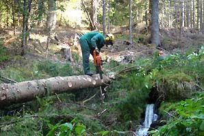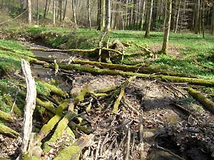 - Neben Verbauungen ist ein typisches Problemfeld im Wald ein nicht standortgerechter Gewässerrandstreifen. Der Gewässerrandstreifen ist auch für die biochemischen Prozesse sowie als Nahrungsgrundlage (in Form von Falllaub) für die Lebensgemeinschaft im Gewässer relevant.