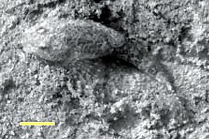 Abb. 2. Die Larven des Bachneunauges (“Querder”) verbringen ihr gesamtes Leben im Sediment der Bäche. Foto: Lorenz Seebauer, Bachneunaugen Querder, Ausschnitt (CC BY-SA 4.0)
