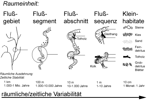 - Wie greifen Strömung, Gewässerstrukturen und Lebensgemeinschaften ineinander und bringen so vielfältige Fließgewässer hervor? Hier geht es um das "innere" funktionale Gefüge von Fließgewässern.