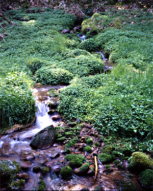 Abb. 5: Quellrinnsal inmitten einer Quellflur im Buntsandstein-Odenwald.