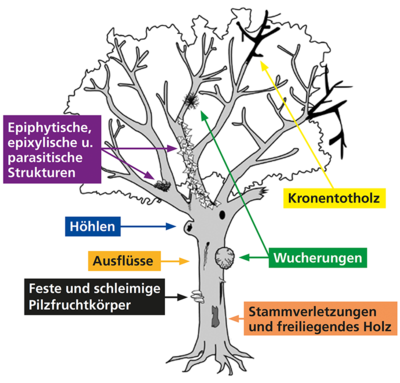 - Bütler, R.; Lachat, T.; Krumm, F.; Kraus, D.; Larrieu, L., 2020: Taschenführer der Baummikrohabitate – Beschreibung und Schwellenwerte für Feldaufnahmen. Birmensdorf, Eidg. Forschungsanstalt WSL. 59 S. Download PDF