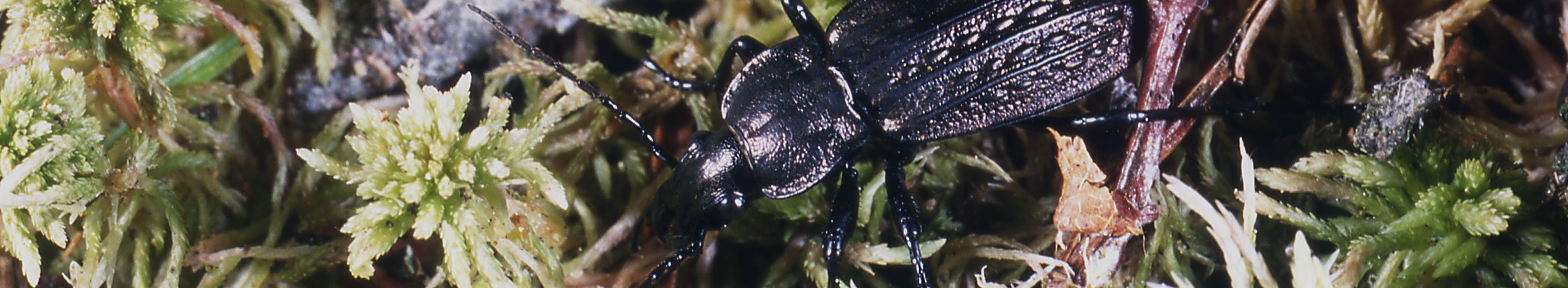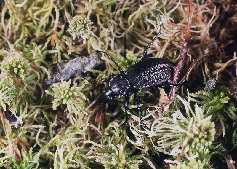 Abb. 2: Der Hochmoorlaufkäfer (Carabus menetriesi pacholei) ist eine prioritäre Art der FFH-Richtlinie und besiedelt bevorzugt Spirkenfilze (Foto: J. Hlasek).