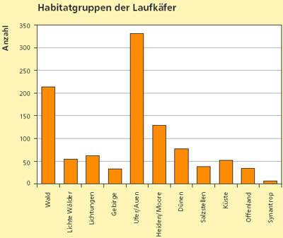 Laufkäfer wurden bisher in insgesamt 64 Naturwaldreservaten (= 42 Prozent) untersucht. Sie sind nach den Nachtschmetterlingen die am besten erforschte Gruppe wirbelloser Tiere.