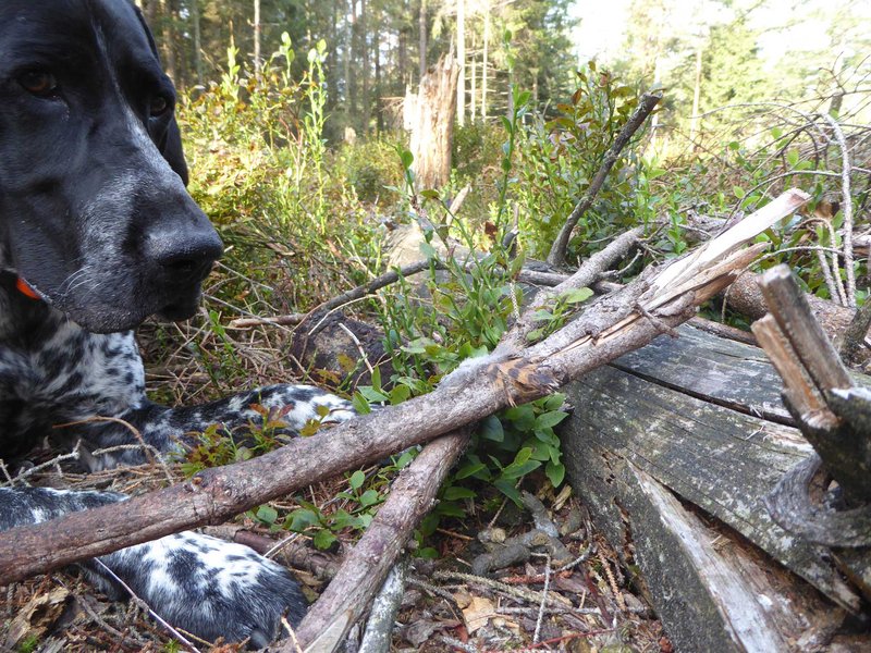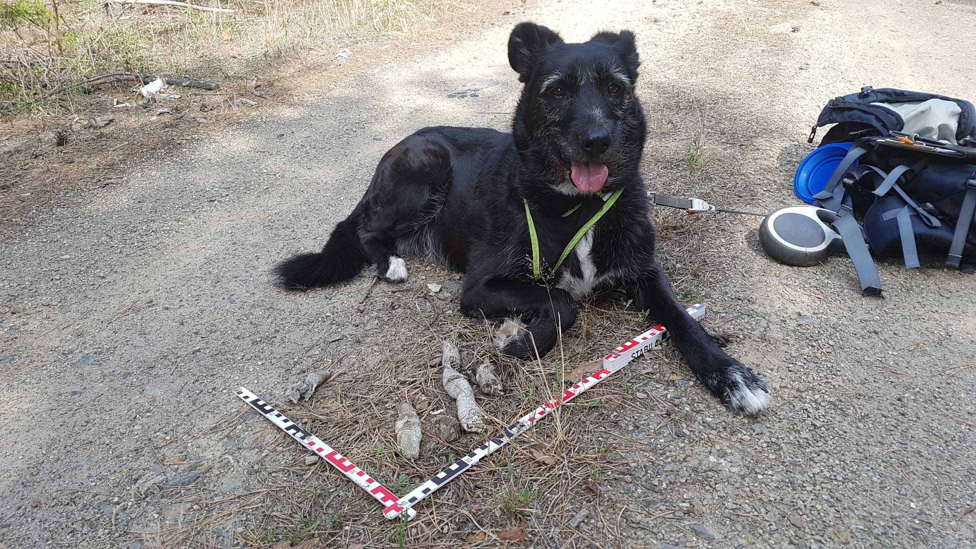 Abb. 2: Die Wolfspürhündin der FVA beim erfolgreichen Aufspüren von Wolflosung.