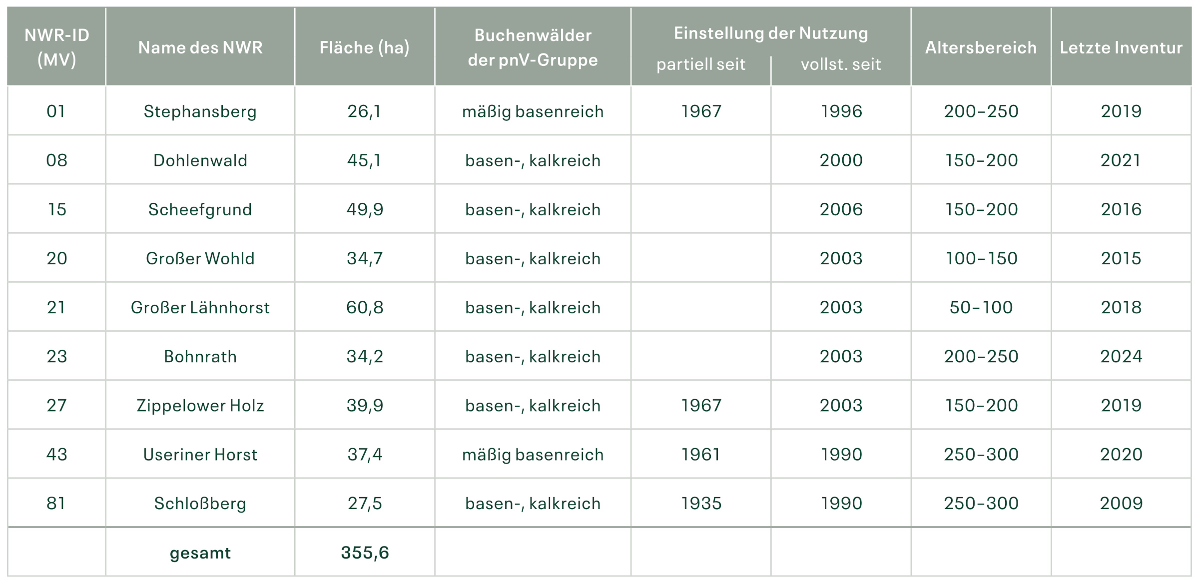 Damit liegt in MV ein umfangreicher Datensatz zu Dokumentation des Ausgangszustandes der Bestockungssituation von Naturwald-Flächen als Auftakt für deren wissenschaftliche Langzeitbeobachtung vor.