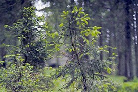 Die Weisstanne ist zwar bis ungefähr 1450 m ü. M. in der Baumschicht vorhanden, sie kann sich jedoch nicht erfolgreich verjüngen. Kleine Tannen sterben in der Regel innert weniger Jahre als Folge des starken Wildverbisses ab. Unsere Erhebungen zeigen, dass die Verbissgrenzwerte nach Eiberle und Nigg (1987) bei dieser Baumart um ein Mehrfaches überschritten werden. Wenn die Weisstanne auch in Zukunft im Rorwald angemessen vertreten sein soll, scheint eine verstärkte Regulierung des Schalenwildes unausweichlich.