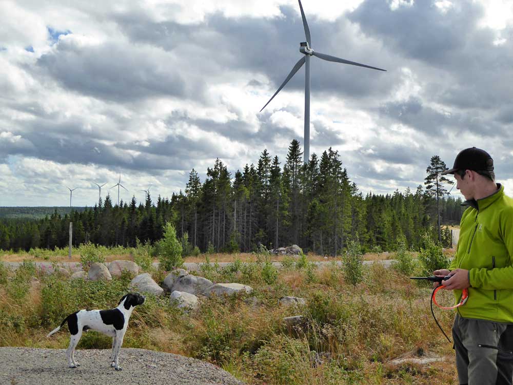 Seit wenigen Jahren werden auch in der Wildtierforschung der FVA Hunde eingesetzt, um Hinweise auf Luchs, Wolf und Auerhuhn effektiver aufzunehmen. Im Projekt "Auerhuhn und Windenergie" helfen Vorstehhunde bei Reproduktionszählungen in Schweden dabei, Gesperre der Vögel aufzuspüren. Hierüber ist es teilweise erst möglich, flächig Aussagen über die Reproduktion der Raufußhühner zu treffen. Im Luchsmonitoring helfen Hunde immer wieder dabei, Überreste von gerissenen Wildtieren zu finden. Besonders bei der Kontrolle von Rissplätzen besenderter Luchse waren die Hunde eine große Hilfe, um punktgenau an die Stelle des Kadavers zu gelangen. Ein solcher Einsatz bedarf zwar nicht unbedingt eines aufwändigen Trainings, doch zeigt diese Methodik, dass effektiver und schneller gearbeitet werden kann, wenn man sich auf die Nase eines suchenden Hundes verlässt.