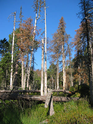 Abb. 3 - Die Sterberate ist der ultimative Indikator für "Waldsterben". Nach Borkenkäfer-Kalamitäten ist die Sterberate lokal oft sehr hoch.