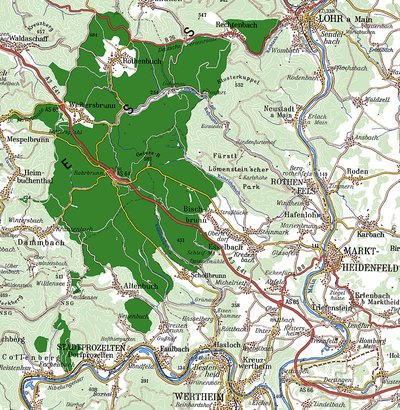 - umfasst ca. 17.000 Hektar im Spessart (größtes zusammenhängendes Laubwaldgebiet Deutschlands)