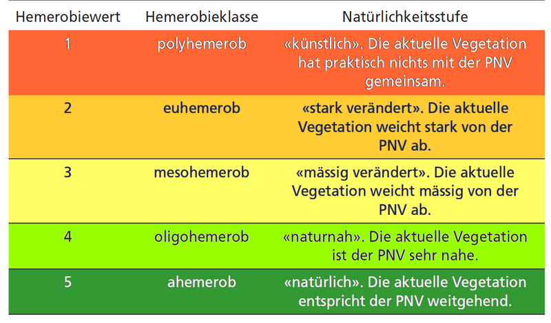 Unter diesem Aspekt knüpften die Autoren an. Sie beschäftigten sich mit anthropogenen Veränderungen von zwei Buchenwald-Gebieten des Schweizer Mittellands (Zürich, Zofingen) und zeigen eine Möglichkeit auf, wie man nebst der Pflanzenvielfalt auch die Natürlichkeit bzw. Hemerobie einer Waldfläche erfassen kann.