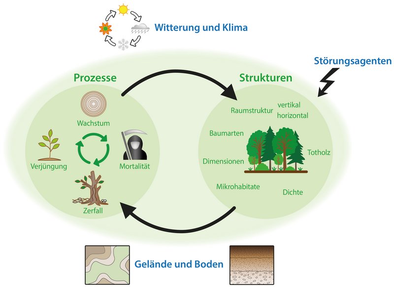 Abb. 2: Konzeptionelles Modell für die Untersuchung des Gehölzbestandes in den Naturwäldern Niedersachsens. Grafik: NW-FVA