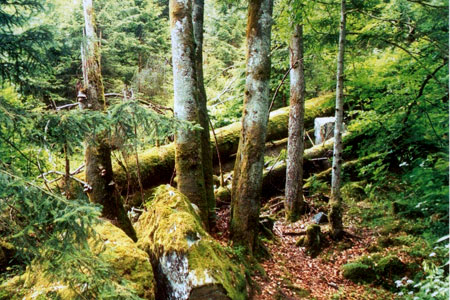 Abb. 1: Das 21 Hektar große Naturwaldreservat Schlosshänge im Vorderen Oberpfälzer Wald wurde im Jahre 1992 ausgewiesen. Es trägt unter anderem Buchenwälder bodensaurer Standorte (Foto: S. Müller-Kroehling).