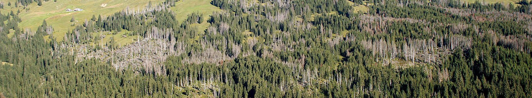 Abb. 1 - Grösse, Kompaktheit und geringer Erschliessungsgrad sind wesentliche Qualitätskriterien für ein Naturwaldreservat. Im Bild das Waldreservat Rorwald (Kanton Obwalden) mit seinen Sturmflächen. Foto: Reinhard Lässig (WSL)