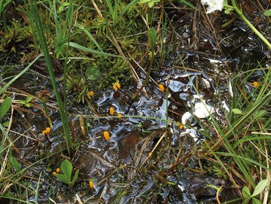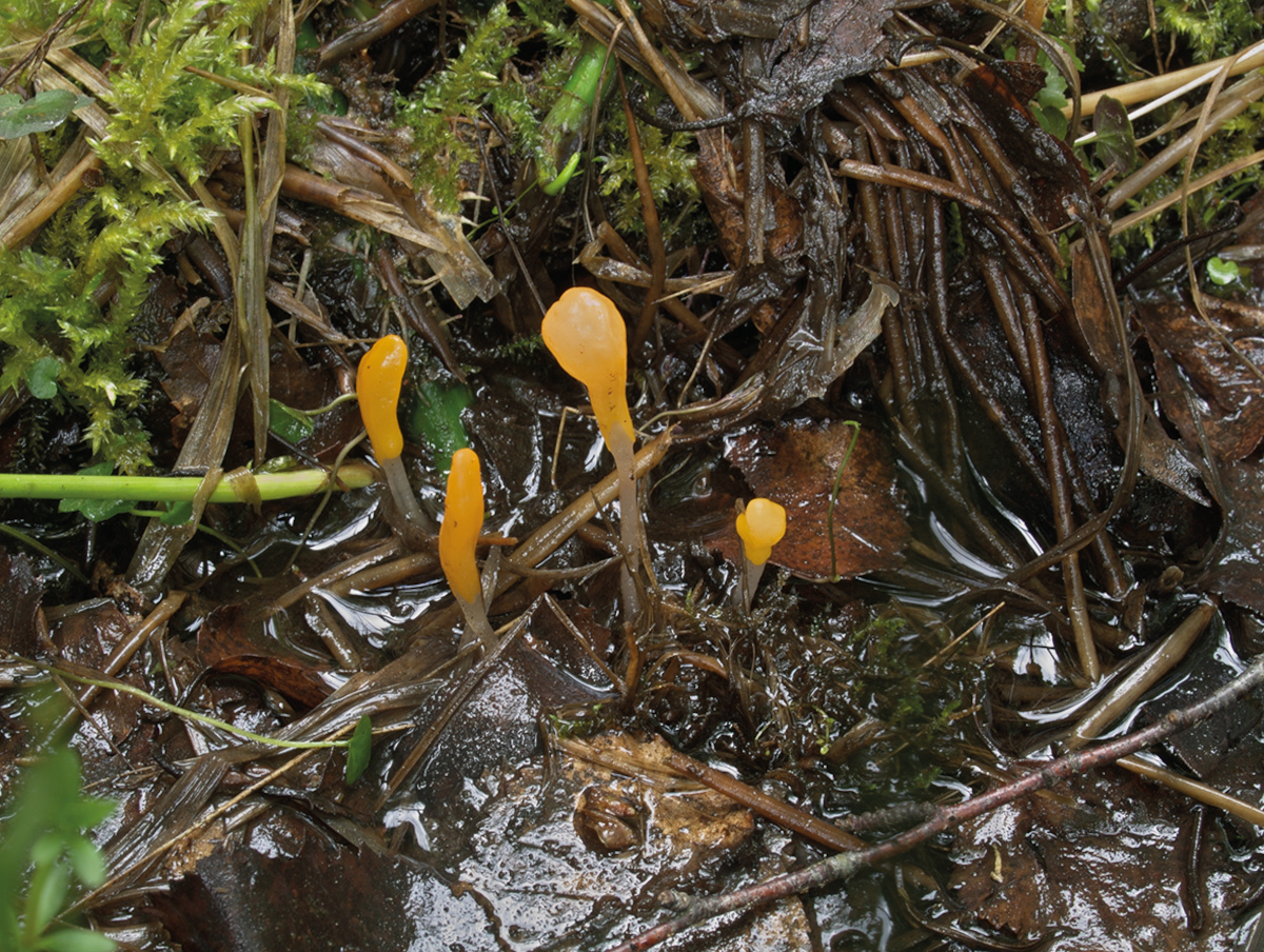 Zum "Pilz des Jahres" wurde 2023 der Sumpf-Haubenpilz (Mitrula paludosa) gewählt. Diese kleine Schlauchpilz-Art erinnert mit ihrem dotterfarbenen Kopf auf schlankem Stil an ein Streichholz. Je nach Witterung kann man den keuligen Fruchtköper von Februar bis Juli antreffen.