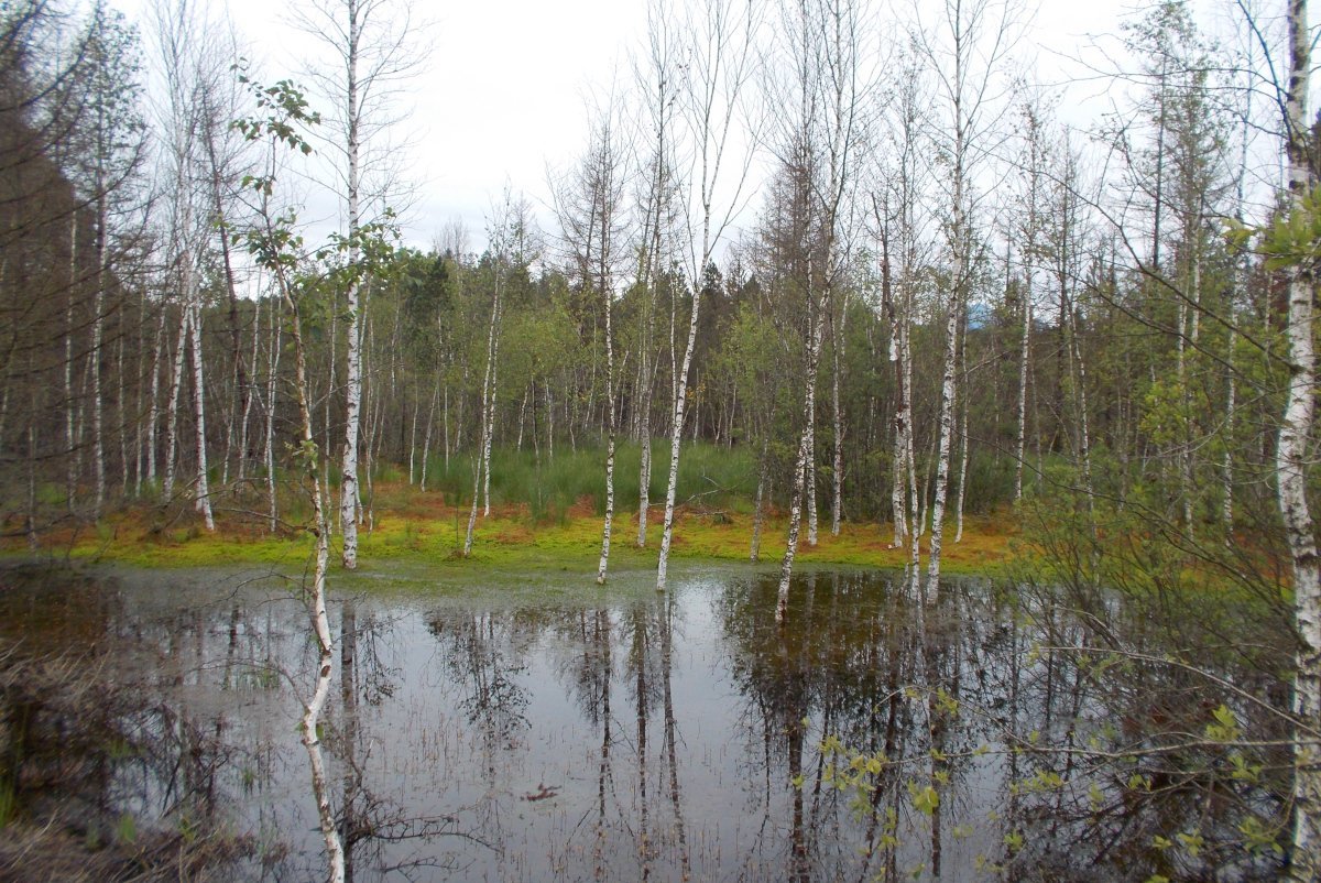 Nach dieser notwendigen Einführung in den Stand des Wissens und der Voraussetzungen speziell für Niedermoore wenden wir unseren Blick in das Grießenbacher Moos, ein typisches Flußtal-Niedermoorgebiet, gelegen im Unteren Isartal. Trotz der für Niedermoore typischen Geschichte mit Entwässerung, Nutzbarmachung und Abtorfung ist ein von der Mächtigkeit, Beschaffenheit und Flächenausdehnung der Torfböden her bedeutsames und renaturierungsfähiges Moor erhalten geblieben. Auf einer Fläche von ca. 65 ha ist es im Kern als bewaldetes Moor gekennzeichnet, dessen aktuelle Waldbestockung praktisch vollständig durch Pflanzungen entstanden ist. Neben Fichtenbeständen sind auf erheblicher Fläche auch naturnahe Laubwaldbestände prägend. Die in den vergangenen 20–40 Jahren angelegten Bestände mit Schwarzerle, Moorbirke und Beteiligung der Zitterpappel stellen die natürlichen Baumarten dieser Niedermoorstandorte dar, waren also auch an der ganz ursprünglichen Vegetation des Moorgebietes in wechselnden Anteilen beteiligt.