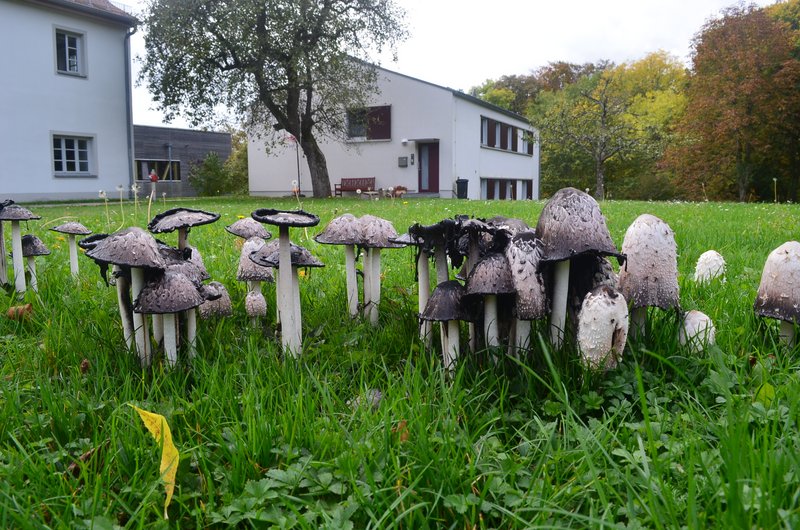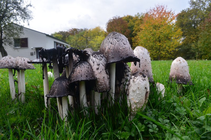 Eine Besonderheit für die Gruppe der Tintlinge ist der Umstand, dass sich die Pilze durch eine enzymatische Eigenverdauung der Zellen bei der Reife der Sporen in eine tintenartige Flüssigkeit verwandeln. Darin lösen sich auch die schwarzen Sporen des Pilzes. Verschiedene Insekten werden von der “Tinte” angelockt, fressen einen Teil davon, tragen aber damit auch dazu bei, dass die Sporen an andere, für den Pilz geeignet Stellen verschleppt werden, um wieder ein neues Myzel im Boden aufzubauen. Diese Tinte lässt sich aber auch nutzen, um wie zu Urgroßvaters Zeiten mit dem Federkiel zu schreiben. Probieren sie es aus. Legen Sie einen Tintling in eine Schale und warten Sie ein bis zwei Tage, bis sich sein Hut mit den Lamellen zersetzt hat. Mittels einer größeren Feder oder auch einer alten Schreibfeder können Sie dann ein paar Buchstaben auf ein Blatt Papier “zaubern”. Wer die Tinte haltbar machen möchte, kann sie mit Nelkenöl (aus der Apotheke) versetzten.