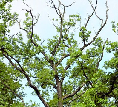 - vorzeitiger Nadel-/Laubblattfall, wobei die Symptome in der Krone von aussen nach innen fortschreiten (Abb. 5)