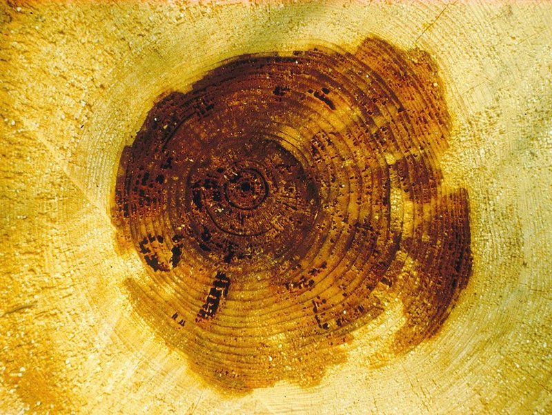Abb. 4: Kernfaules Fichtenholz durch Hallimaschbefall. Foto: Ottmar Holdenrieder (ETH)