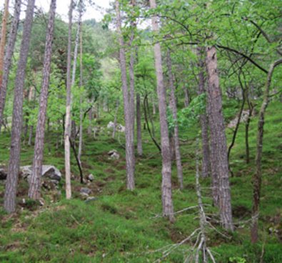 - Wälder in felsigen, seichtgründigen oder schroffen Lagen, wenn ihre Wiederbewaldung nur unter schwierigen Bedingungen möglich ist,