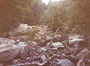 Grundsätzlich sind Abflusssteigerungen umso größer, je mehr Biomasse entnommen wird. Und im bewaldeten und bestockten Gelände treten überwiegend Rutschungen mit weniger Masse oder nur bei höheren Hangneigungen auf. Es gibt keinen Hinweis darauf, dass Waldvegetation Rutschungen von relevanter Intensität in der Transitzone effektiv bremsen könnte, wenn nicht das Gelände diesen Prozess unterstützt. Mitgeführtes Holz ist zusätzlich schädigend. Zur Verminderung der Auflast und der Schadwirkung durch Holz werden daher auf permanentem Rutschgelände junge oder strauchartige Bestände mit geringem Anteil an