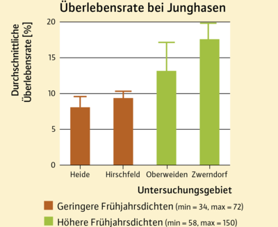 Der Grund für die unterschiedlichen Dichten scheint daher also eher eine erhöhte Sterblichkeit der Junghasen als eine verringerte Fruchtbarkeit der Häsinnen zu sein.