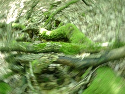 Abb. 2: Dynamik im Naturwald: Totholz verbleibt unter natürlichen Wuchsbedingungen der Eiche im Bestand. Das anfallende Holz variiert mit der Zeit in Anordnung, Menge, Durchmesser und Zersetzungsgrad abhängig vom Alter des Bestandes.
