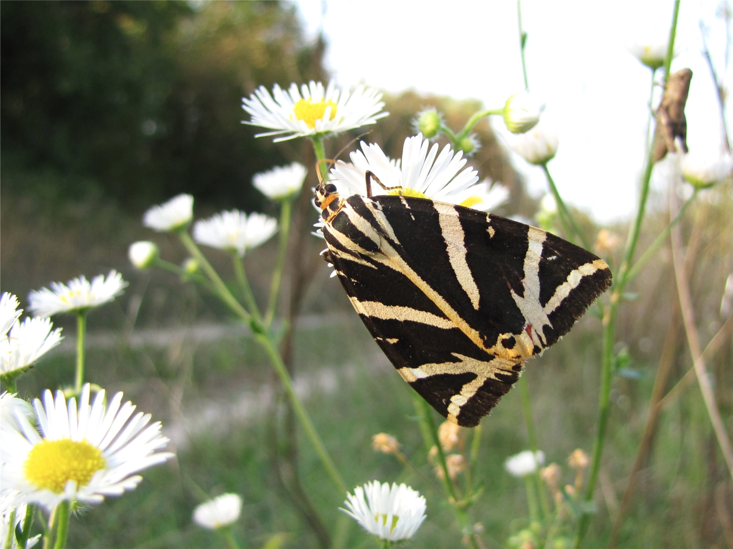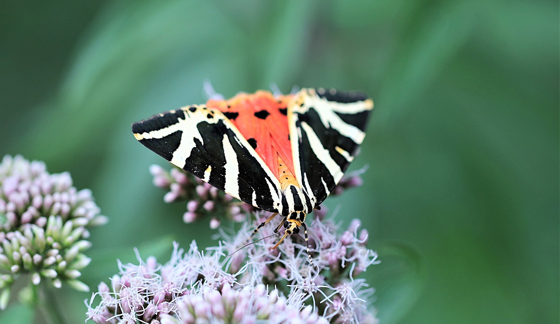 Die Spanische Flagge fliegt gerne tagsüber im Sonnenschein. Auch hier ähnelt sie eher den Tagfaltern als den Nachtfaltern. Die Schmetterlinge besitzen ausgebildete Mundwerkzeuge und können daher Nahrung aufnehmen. Sie sitzen gerne auf den rotvioletten Blütenständen des Wasserdostes (Eupatorium cannabinum), um dort, wie viele andere Insektenarten auch, Nektar zu saugen (Abbildung 5).