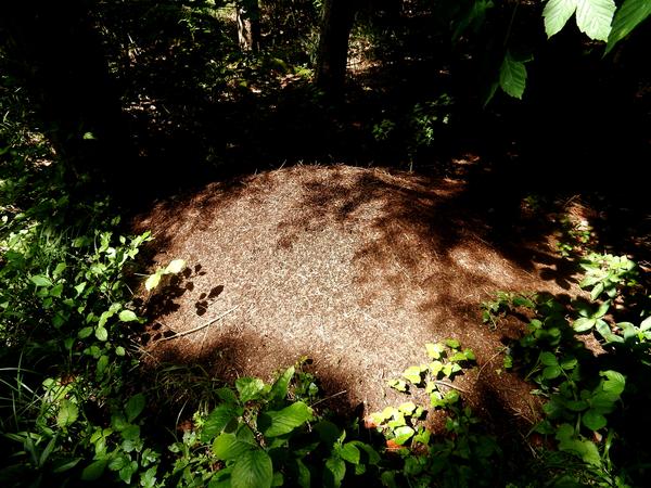 - Sorgfalt - Der Ameisenhaufen ist ein sehr sensibles Gebilde. Bitte stören Sie die Ameisen so wenig wie möglich. Treten Sie nur von einer Seite an den Haufen heran und laufen Sie nicht um den Bau herum – das was Sie sehen, ist vielleicht nur die Spitze des Ameisenberges. Der unterirdische Teil kann durch Tritt beschädigt werden.